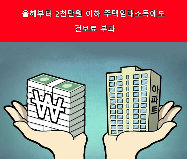연 2천만원 이하 주택임대소득은 2018년 귀속분까지는 비과세 대상이었지만 2019년 귀속분부터 과세 대상으로 전환됩니다. 2주택 이상 소유자 등이 지난해 벌어들인 2천만원 이하의 주택임대소득에도 올해 11월부터 건강보험료가 부과됩니다. 9일 보건복지부와 건강보험공단, 국세청 등에 따르면 건강보험 재정 확보 차원에서 '소득이 있으면 보험료를 부과한다'는 원칙에 따라 연 2천만원 이하 주택임대소득에 대해서도 오는 11월부터 건보료를 매깁니다.