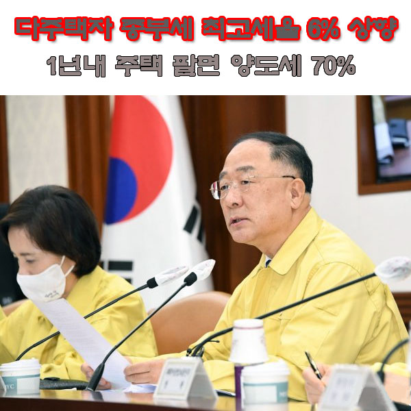 10일 정부가 종합부동산세(종부세) 최고세율을 6%로 대폭 상향하는 등 부동산 시장의 안정화를 위하여 세제를 전방위적으로 강화하는 방안을 내놨습니다. 홍남기 경제부총리는 10일 오전 정부서울청사에서 제10차 비상경제중앙대책본부 회의 브리핑을 통해 이 같은 내용이 담긴 '주택시장 안정 보완대책'을 전했습니다.