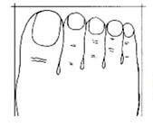 이러한 발은 상대적으로 길고 발가락이 조금 서로 겹칩니다. 이런 발을 가진 사람은 내성적이라고 할 수 있습니다. 어떤 일을 본인만 간직하고 깊이 숨기고자 합니다. 충동적일 수 있고 기분이 급격하게 변할 수 있다고 합니다.