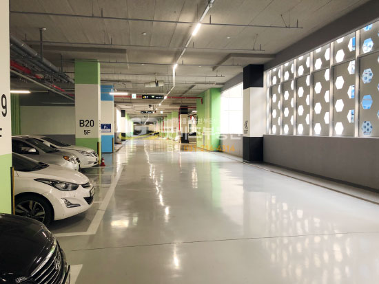 지하층부터 지상 8층까지는 제조공장으로 사용할 수 있도록 6m 이상의 높은 층고에 화물 운송이 가능한 드라이브인(Drive-in) 시스템을 적용하였습니다. 이 때문에 8층까지는 2.5t 차량 이동이 가능하며 각 호실 앞까지 차량이 이동해 화물 운송을 보다 손쉽고 빠르게 할 수 있습니다. 또 지상 1층은 대형 화물(컨테이너 차량 진입 가능)을 내릴 수 있는 하역장과 화물 엘리베이터(4t) 2대를 설치되어 있습니다.