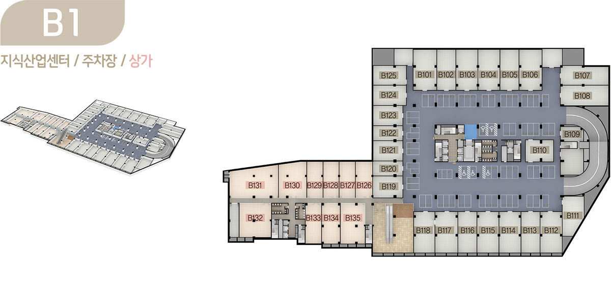드라이브인 시스템이 적용된 공장형 지식산업센터는 지하 2층부터 지상 6층까지로 제조업, 물류창고 등 원자재나 물류량이 많은 업체가 사용하기에 안성맞춤이며, 오피스형 지식산업센터는 지상 7층부터 15층까지로 모든 호실을 중소형 크기의 섹션 형태로 구성해 입주 기업들이 원하는 만큼 공간으로 활용할 수 있도록 하였습니다.