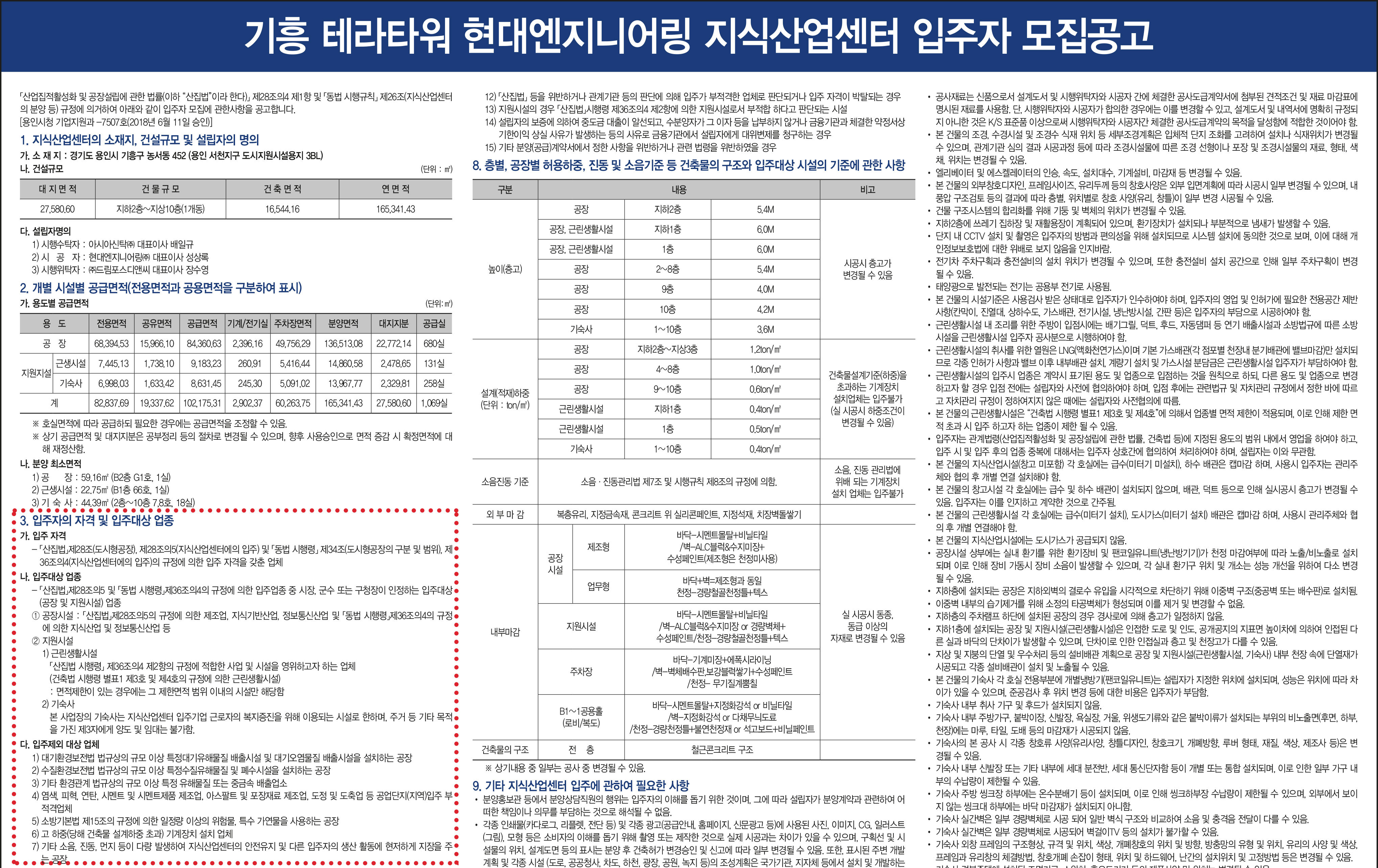 ■ 입주자의 자격 및 입주대상 업종 예시(기흥 테라타워)