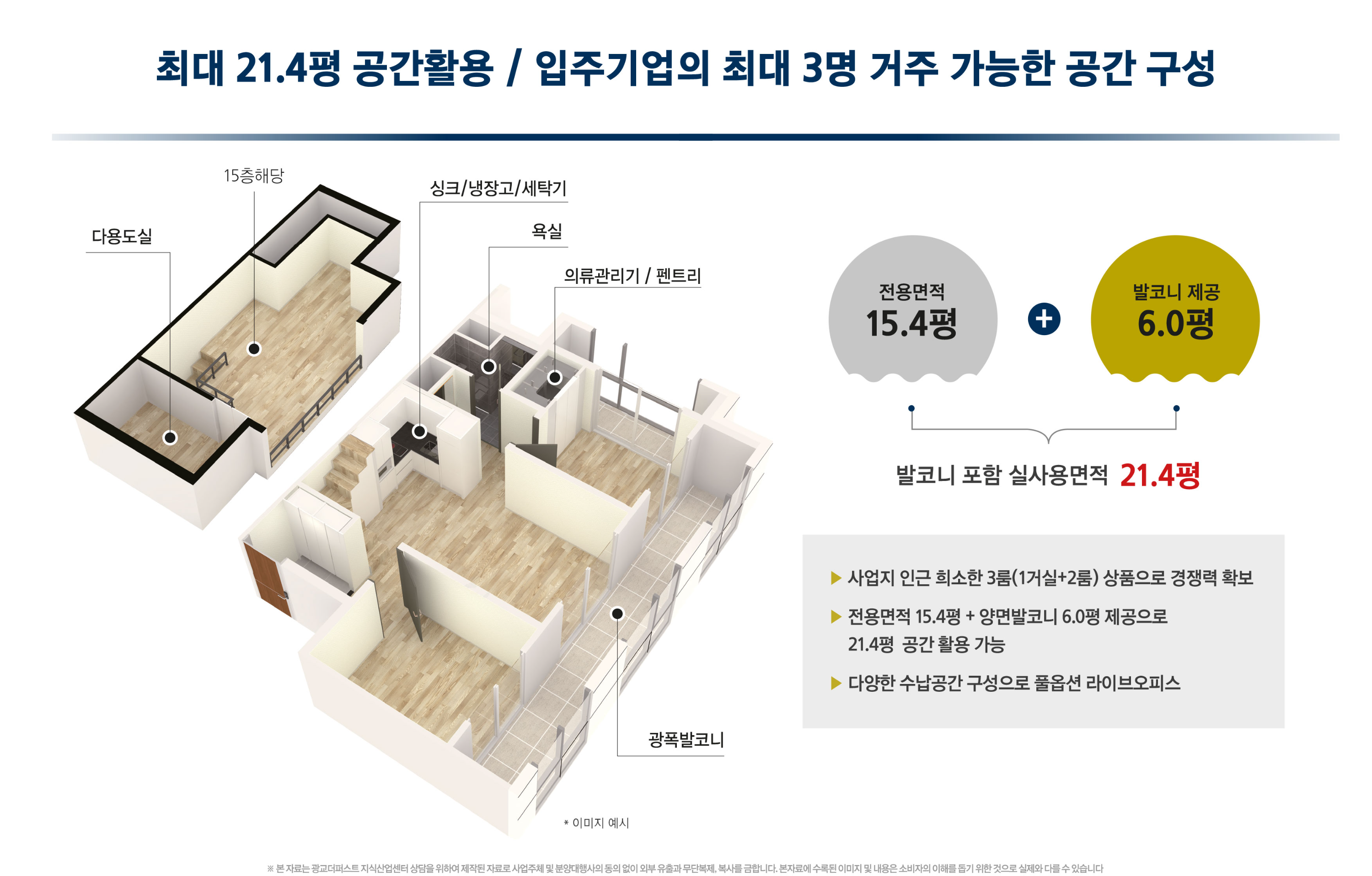 지하 1층부터 지상 9층까지는 공장형(제조 및 물류), 지상 1층에 근린생활시설(상가), 지상 10층에 공용주차장, 지상 11층~12층까지 업무형 사무실, 지상 13층~15층까지 라이브오피스로 구성되었습니다.
