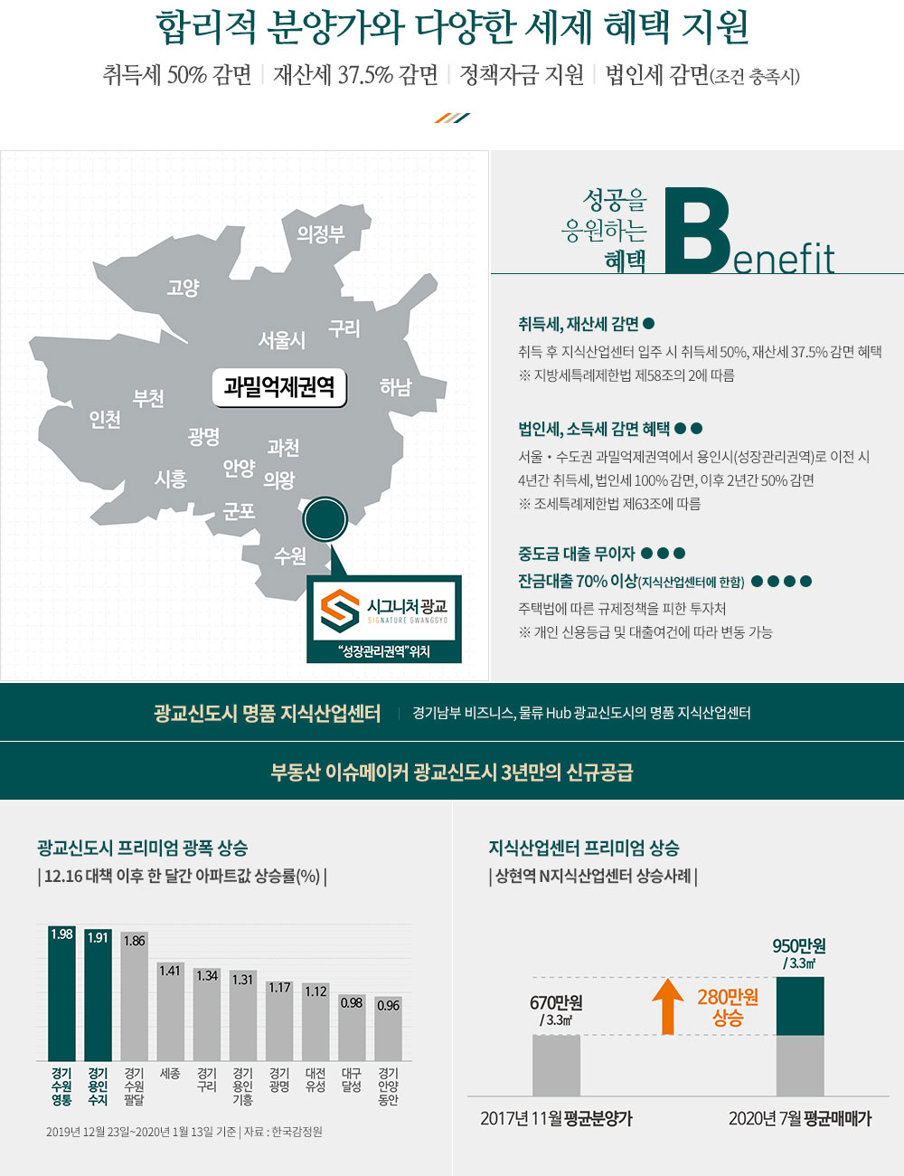 광교신도시 역세권(상현역)에 공급한 시그니처광교 지식산업센터가 "2023년 3월 중순" 입주를 시작합니다. 단지는 대지면적 1만5,237.20㎡ 부지에 지하 4층~지상 10층, 연면적 6만795.13㎡ 규모로 공급되었으며, 지식산업센터 1개동, 기숙사 2개동, 근린생활시설 등으로 구성되었습니다.